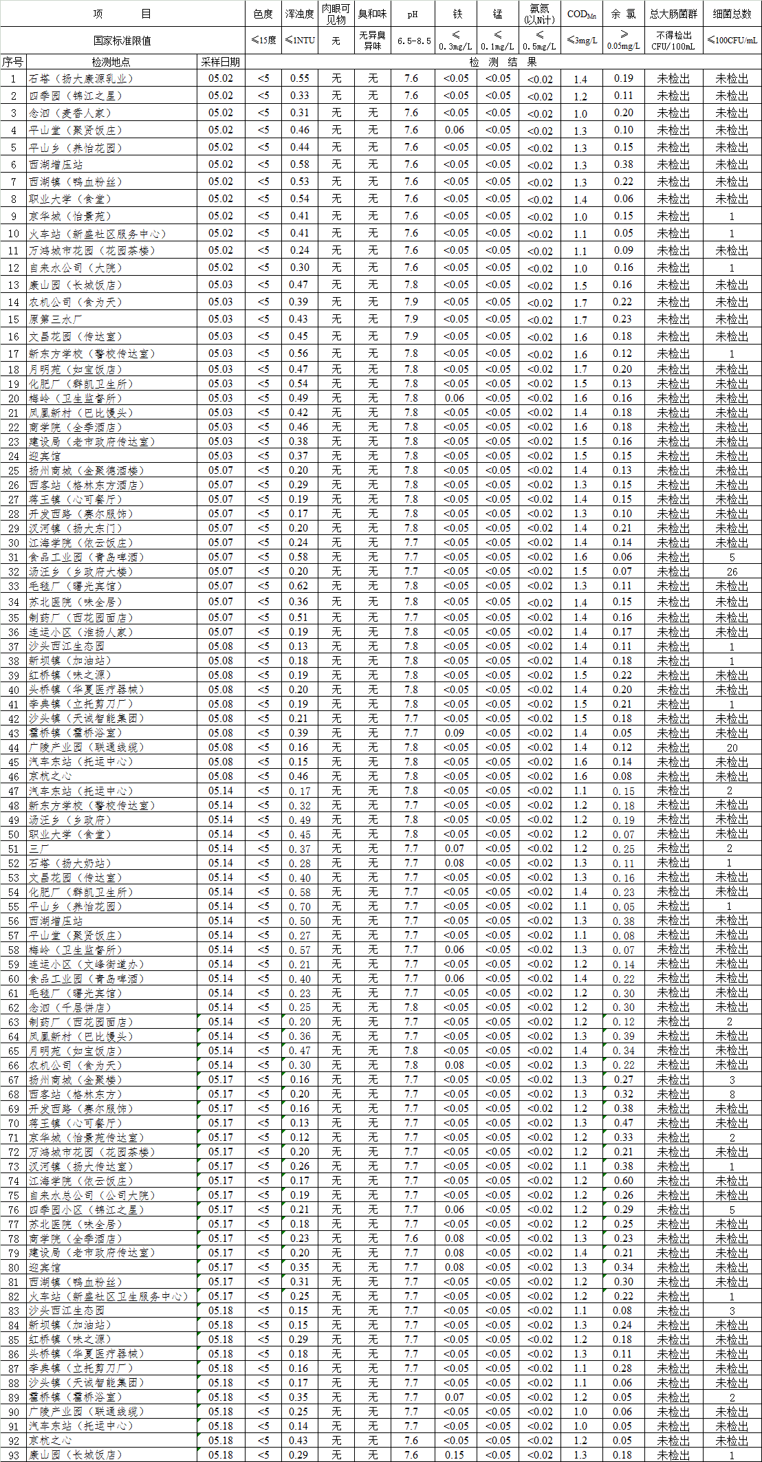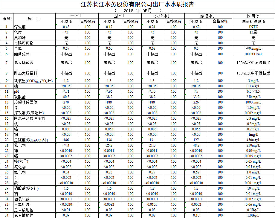 自來水水質(zhì)報告(2018-5月份)
