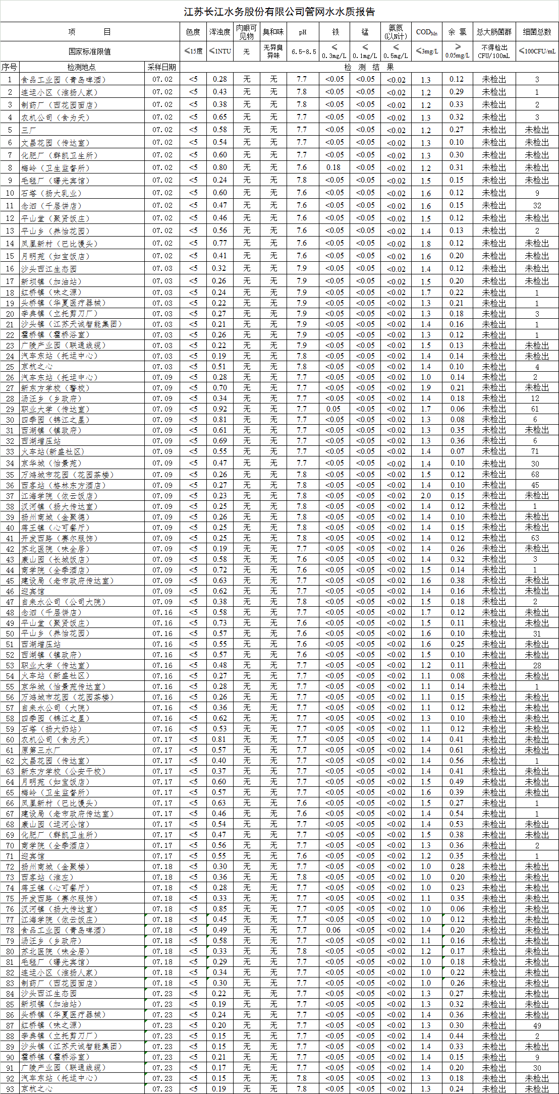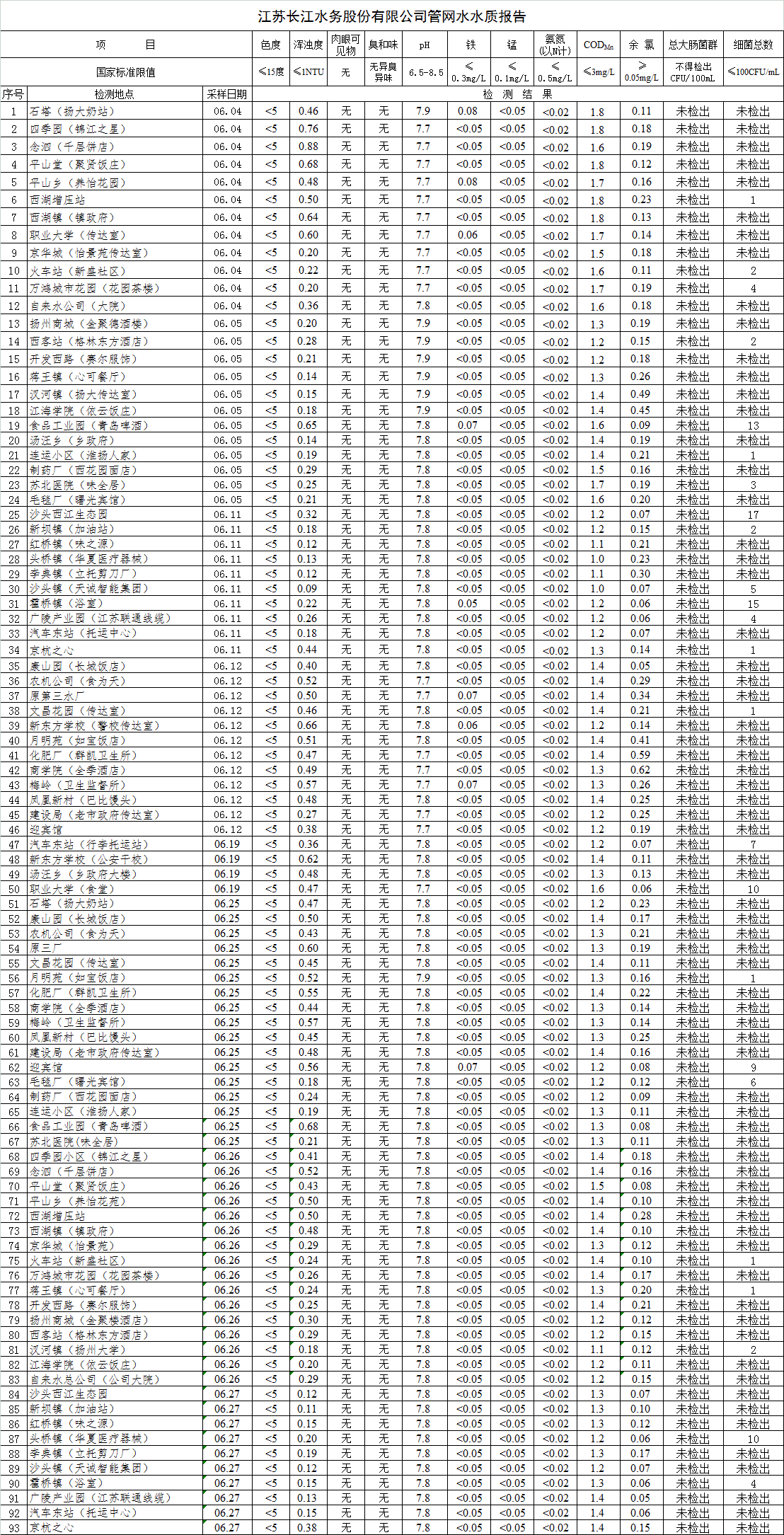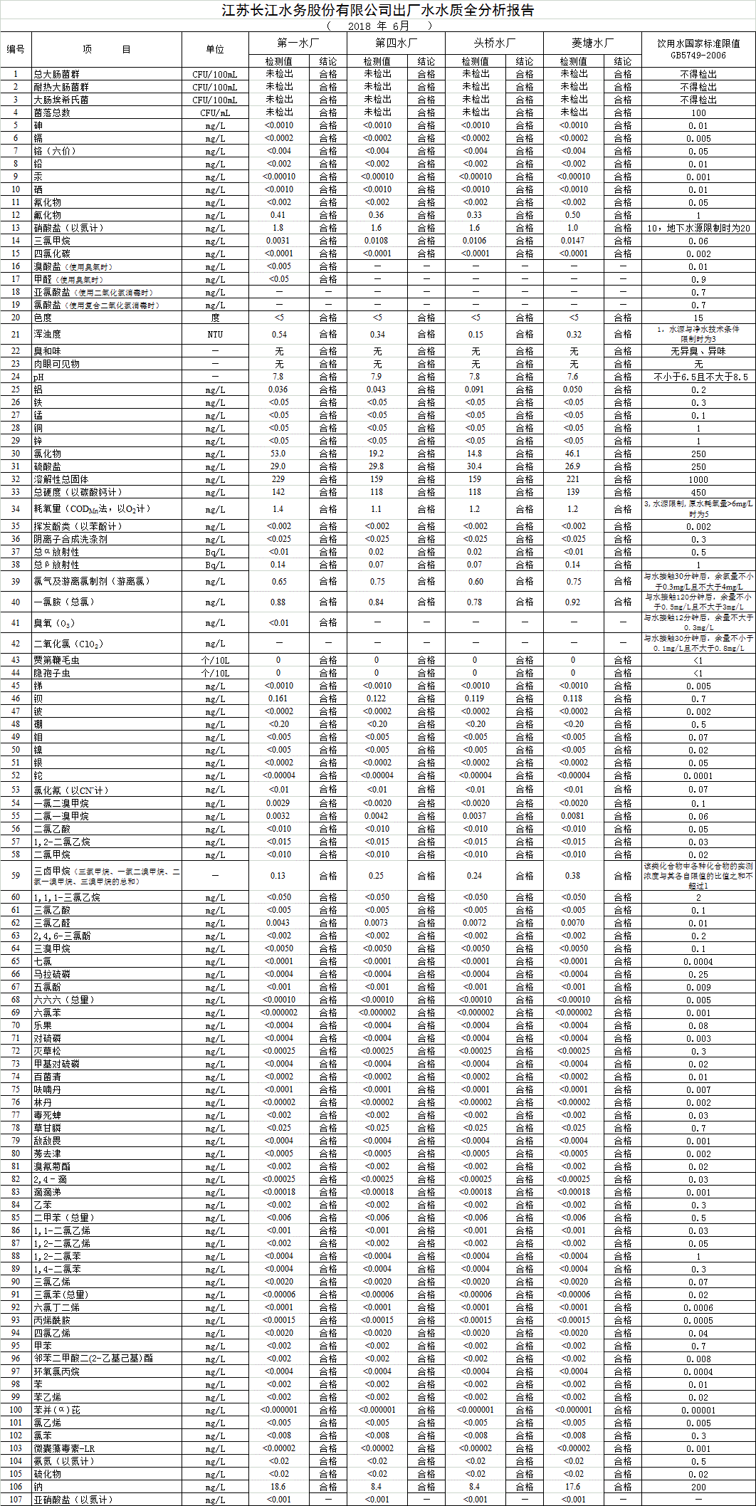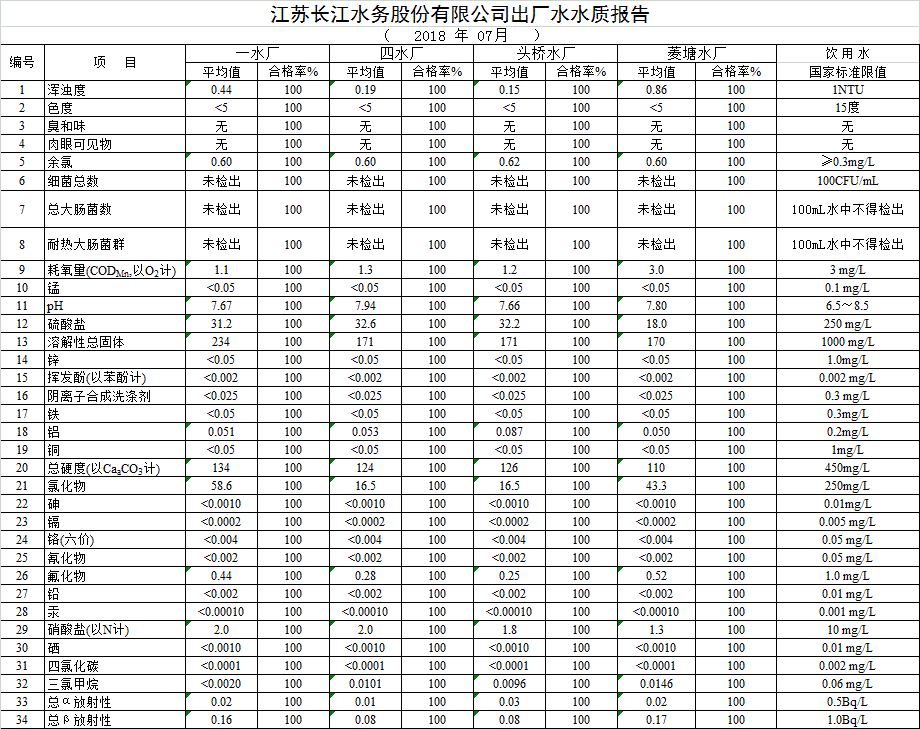 自來(lái)水水質(zhì)報(bào)告(2018年6月7月)