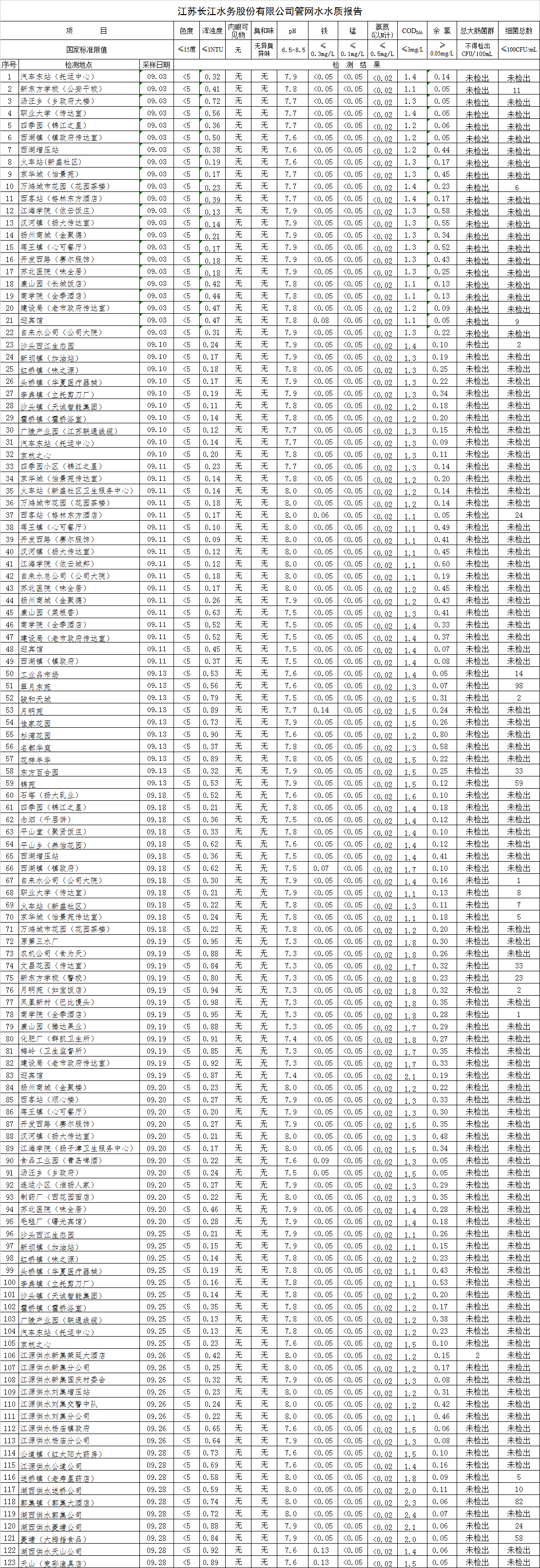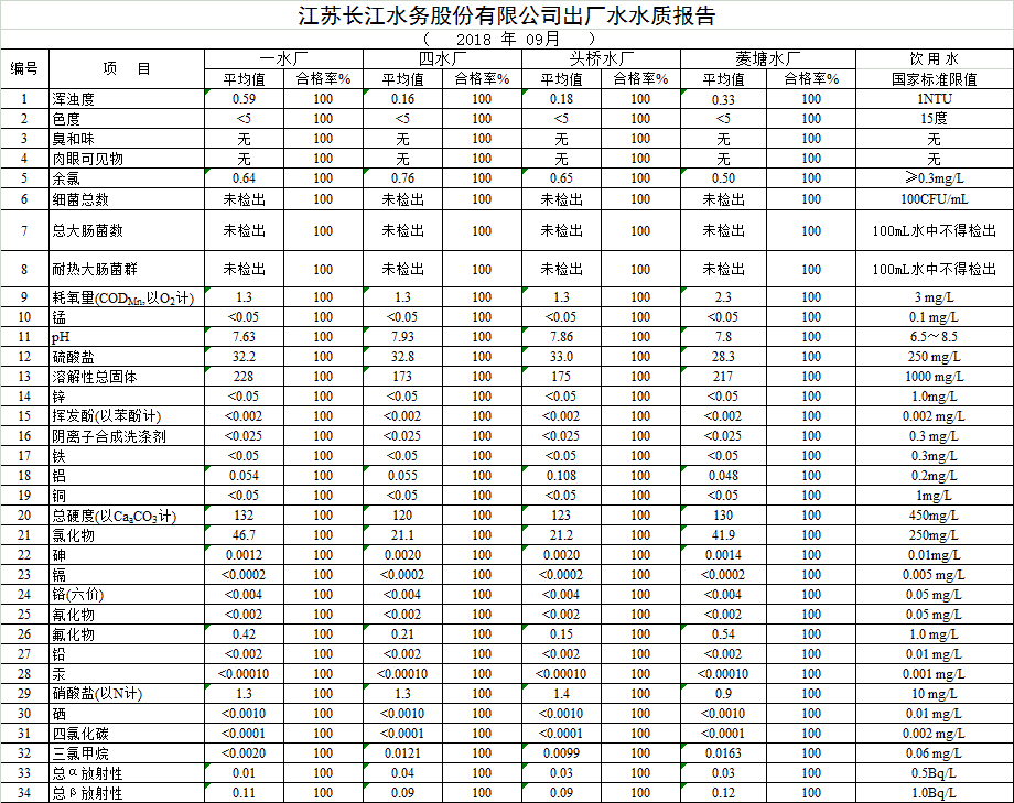自來(lái)水水質(zhì)報(bào)告(2018年9月份)