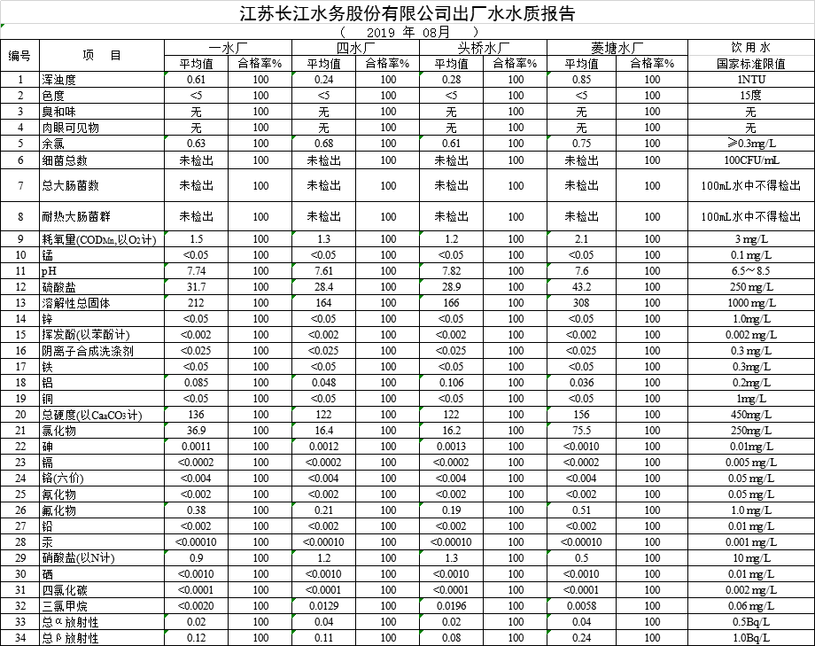 自來水水質(zhì)報告(2019年8月份)