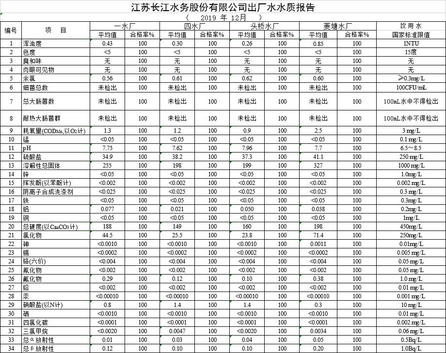 自來水水質報告(2019年12月份)