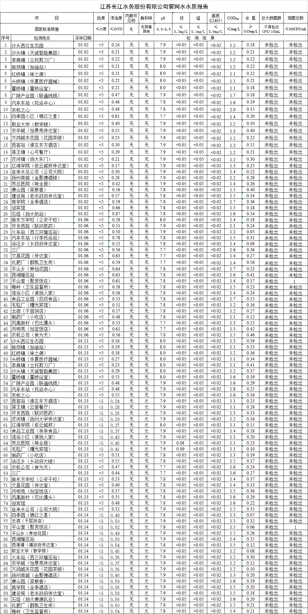江蘇長(zhǎng)江水務(wù)股份有限公司管網(wǎng)水水質(zhì)報(bào)告(2020年1月)