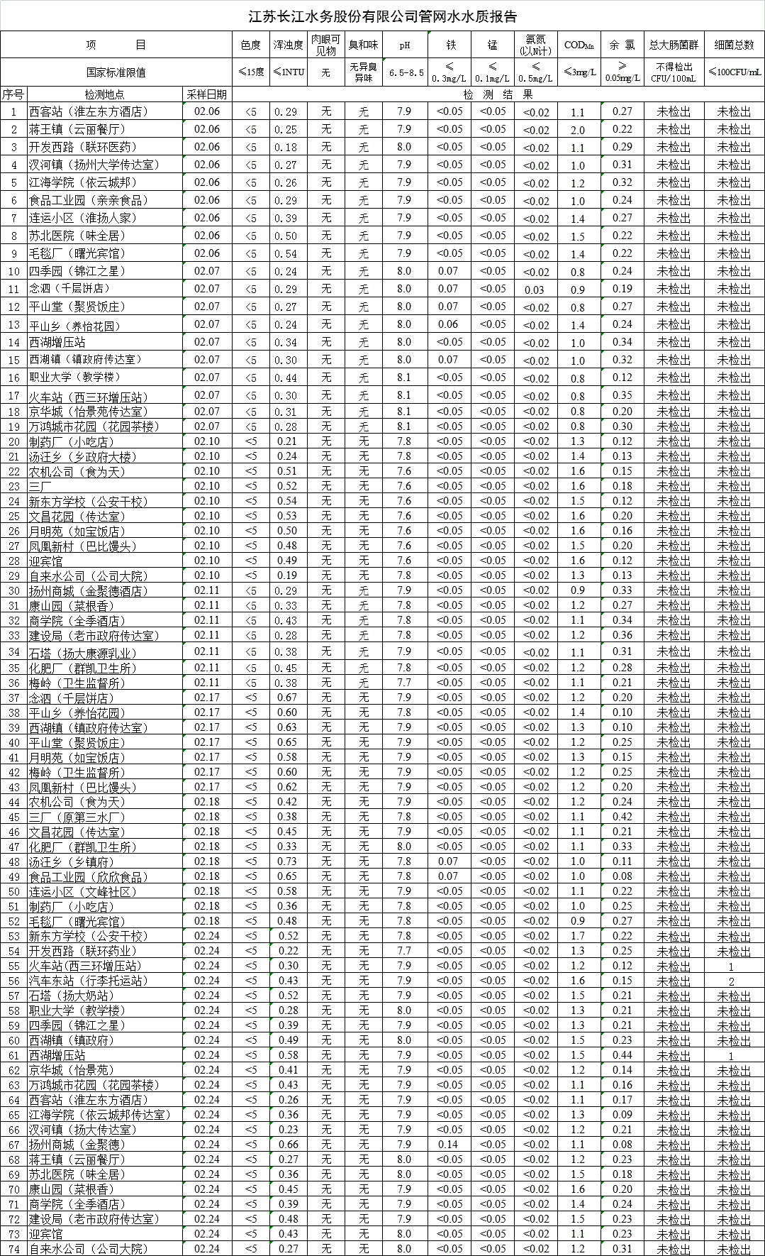 江蘇長江水務(wù)股份有限公司管網(wǎng)水水質(zhì)報告(2020年2月)