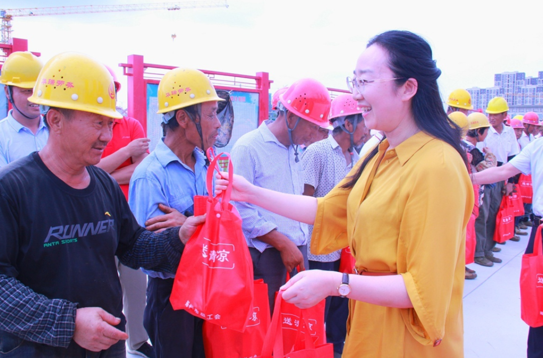 洪慧娟深入施工現(xiàn)場,仔細(xì)察看了施工環(huán)境,詳細(xì)了解了工程進(jìn)度,親切詢問了職工們的作息時間,對大家頂烈日冒酷暑地辛勤工作和項(xiàng)目部各類嚴(yán)謹(jǐn)可行的高溫保障措施表示高度贊揚(yáng),并為他們送上了花露水、毛巾等解暑降溫的慰問物資。