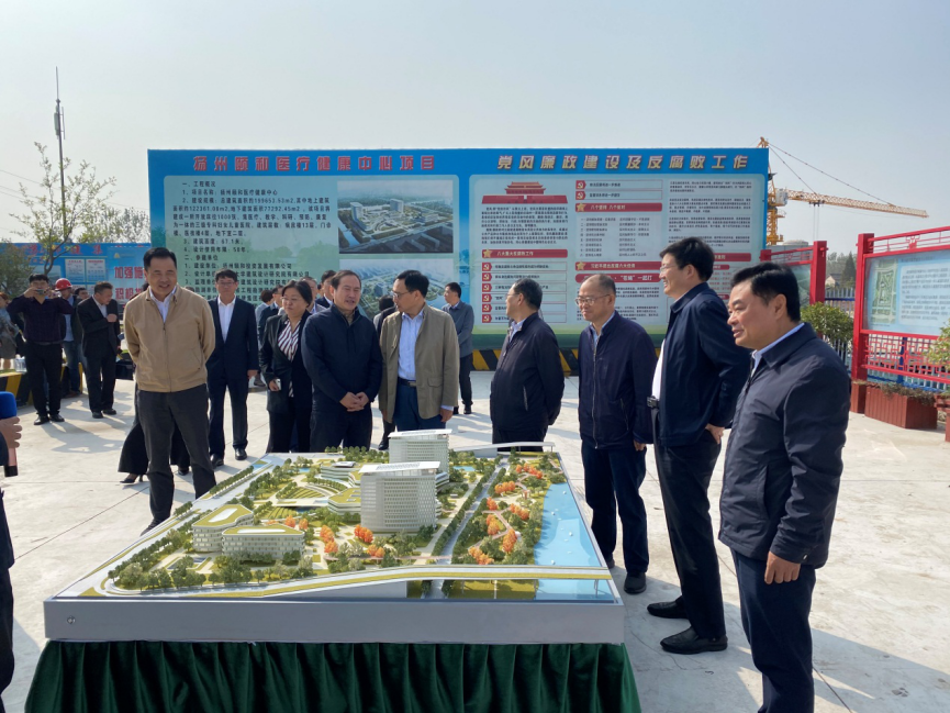 10月22日上午,市人大常委會(huì)副主任沙志芳、范天恩和秘書長(zhǎng)劉曉明一行赴揚(yáng)州頤和醫(yī)療健康中心項(xiàng)目施工現(xiàn)場(chǎng)進(jìn)行調(diào)研,市衛(wèi)健委主要負(fù)責(zé)人陪同調(diào)研。城控集團(tuán)總經(jīng)理夏正東、副總經(jīng)理方璇智和置業(yè)公司相關(guān)人員參加活動(dòng)。
