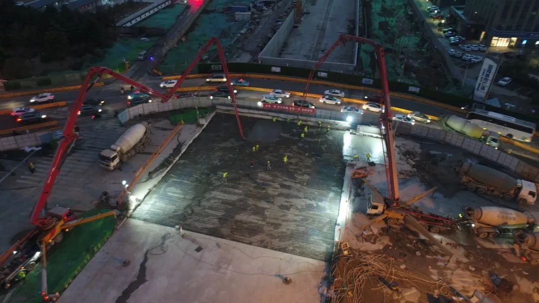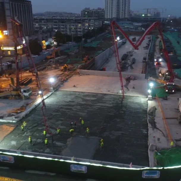 1月3日22:00,經(jīng)過(guò)近13個(gè)小時(shí)的連續(xù)作業(yè),運(yùn)河路文昌路隧道最后一塊頂板順利澆筑,標(biāo)志著隧道主體結(jié)構(gòu)全面完工!