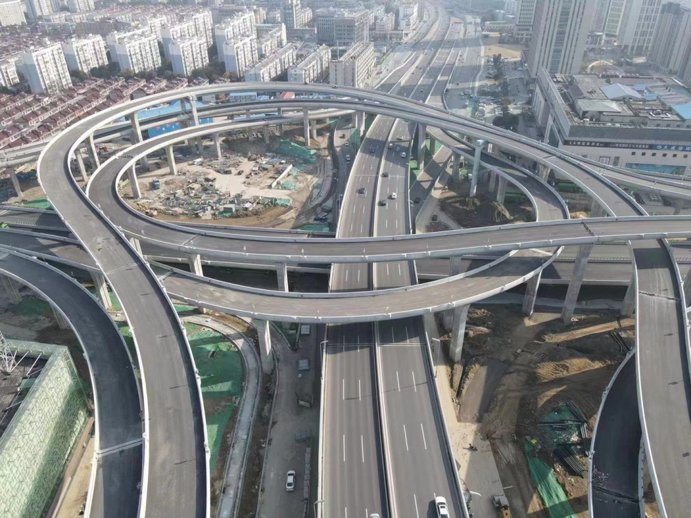 潤(rùn)揚(yáng)路快速化改造(潤(rùn)揚(yáng)路-江陽(yáng)路互通立交)工程為五層渦輪型全互通立交,是揚(yáng)州市快速路網(wǎng)重大節(jié)點(diǎn)項(xiàng)目。工程主線高架橋北起百吉巷,南至牧羊路,共15聯(lián)48跨,全長(zhǎng)1.52公里;8條互通匝道共58聯(lián)162跨,全長(zhǎng)5.04公里。工程橋梁瀝青攤鋪面積總計(jì)達(dá)9.4萬(wàn)平方米。