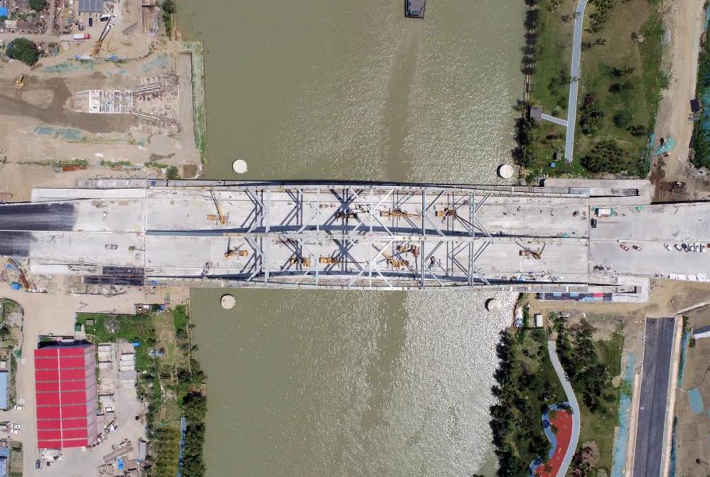 跨京杭運(yùn)河大橋是萬??焖俾饭こ讨仉y點(diǎn)及控制性節(jié)點(diǎn)工程,施工難度大、精度要求高,決定著整個工程關(guān)門工期。施工過程中涉及的鋼棧橋施工、深基坑施工及上部結(jié)構(gòu)吊裝均為超過一定規(guī)模的危險性較大的分部分項工程,施工安全風(fēng)險高。為確保按期完成,錢俊多次組織召開專題推進(jìn)會,倒排工期,掛圖作戰(zhàn),制定詳細(xì)的施工計劃,出現(xiàn)偏差及時分析并修正調(diào)整;同時,加強(qiáng)與海事、航道、船閘等部門的對接協(xié)調(diào),確保鋼構(gòu)件及時進(jìn)場、及時封航吊裝。施工期間,每天安排專人對施工部位進(jìn)行巡查,檢查措施落實情況,針對發(fā)現(xiàn)的問題及時組織各方商討最佳解決方案,優(yōu)化施工工藝。在全體參建人員的共同努力下,2021年1月27日,跨京杭運(yùn)河大橋拱肋全部合龍;2021年4月16日,跨京杭運(yùn)河大橋橋面板合攏......目前,萬福快速路工程正按照既定計劃順利推進(jìn),工程形象進(jìn)度完成率近90%。