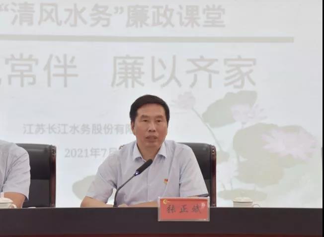 城控集團(tuán)黨委委員、長(zhǎng)江水務(wù)黨委書記、董事長(zhǎng)張正斌發(fā)表講話,他分別從家和萬(wàn)事興、量變引起質(zhì)變、小心成為“獵物”這三個(gè)方面給在場(chǎng)所有人員再次敲響廉政警鐘。他表示,長(zhǎng)江水務(wù)多年來(lái)各項(xiàng)工作取得的長(zhǎng)足發(fā)展,飽含全體員工的辛勤付出和努力,更離不開職工家屬的關(guān)心與支持。家風(fēng)是黨風(fēng)的重要組成部分,家風(fēng)連著黨風(fēng),家廉才能政廉,全體黨員干部要從百年黨史中傳承優(yōu)良家風(fēng),把修身齊家落到實(shí)處,要和家人同心協(xié)力,守好家庭防線,真正把家風(fēng)建設(shè)內(nèi)化于心、外化于行,做到修身律己、廉潔齊家,為扎實(shí)推進(jìn)公司全面從嚴(yán)治黨向縱深發(fā)展,譜寫公司高質(zhì)量發(fā)展新篇章提供堅(jiān)強(qiáng)保障。