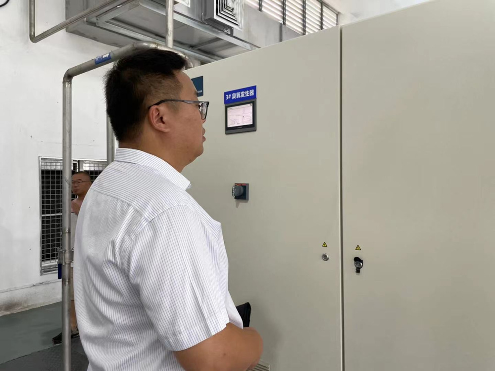 生產(chǎn)班工作人員不畏艱苦,在高溫環(huán)境下,比的是細心耐心和精益求精的工作態(tài)度。為了保證夏季高溫供水安全,第四水廠生技股股長童偉,每天巡視的步數(shù)都要超過兩萬步,一圈走下來,衣服浸濕,他說:“我們第四水廠加強了原水及出廠水源的檢測,實行一日多檢測,確保出廠水質(zhì)安全,同時對城區(qū)供水設(shè)備進行了巡查,實行24小時值班值守制度,及時響應(yīng)、及時處理居民用水問題?!?/p>