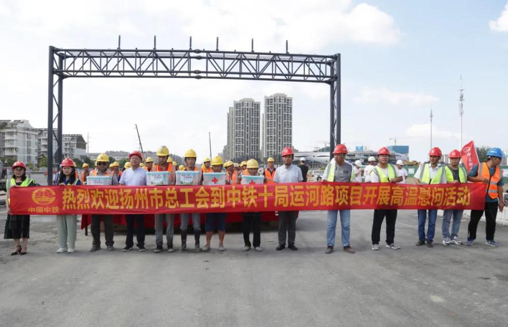 7月22日,揚(yáng)州市總工會兼職副主席、市人社局副局長王錦程,揚(yáng)州市總工會副調(diào)研員樊秉強(qiáng)一行先后來到潤揚(yáng)快速路和運(yùn)河快速路施工現(xiàn)場,走訪慰問高溫下堅守一線的施工人員。市總工會勞動和經(jīng)濟(jì)工作部部長賀光明、副部長周飛,市建設(shè)產(chǎn)業(yè)工會主任范華陪同慰問。城控集團(tuán)副總經(jīng)理季紅軍、萬福公司主要負(fù)責(zé)人參加了慰問。