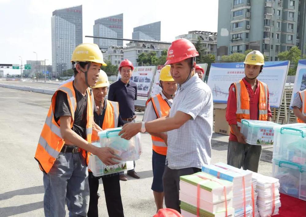 在慰問現(xiàn)場,王錦程一行在認(rèn)真了解了項(xiàng)目建設(shè)情況后,代表市總工會向一線施工人員付出的辛勤勞動表示了感謝,為他們發(fā)放了防暑降溫慰問品和安全生產(chǎn)法手冊,要求施工單位嚴(yán)格落實(shí)現(xiàn)場保護(hù)措施,合理安排作業(yè)時間,切實(shí)做好防暑降溫工作,時刻把人員健康和安全生產(chǎn)放在首位。同時,鼓勵施工人員再接再厲,繼續(xù)保持昂揚(yáng)的斗志,發(fā)揚(yáng)不怕吃苦的精神,確保工程按序時保質(zhì)保量完成。