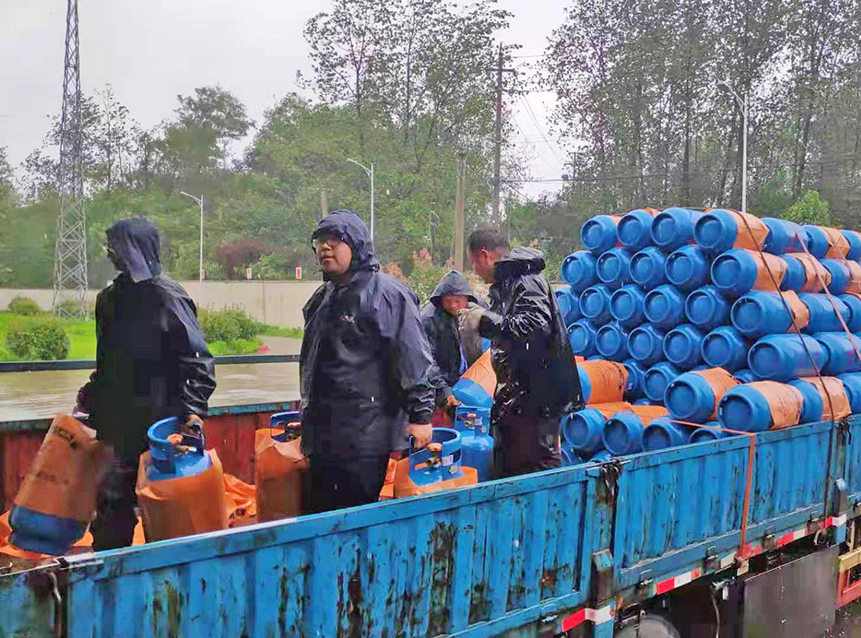7月26日一大早,兩輛大卡車滿載著一千余只新鋼瓶,來到揚州中燃楊廟液化氣場站,全體工作人員與臺風(fēng)搶時間,面對狂風(fēng)、暴雨,把充裝臺場地清理出來擺放運達(dá)的一千余只新鋼瓶。同時,爭分奪秒灌裝、搶運鋼瓶保證配送,保障揚州市民穩(wěn)定用氣,讓揚州中燃液化氣鋼瓶走進(jìn)千家萬戶,送去更方便、更快捷的服務(wù)。