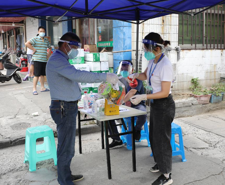8月2日,趙仲琳看到集團發(fā)布的防疫志愿者招募令后,她都沒跟丈夫王杰商量,就毅然報名參加了防疫志愿者隊伍。8月5日,趙仲琳所在的城控集團第一批志愿服務(wù)隊集結(jié)完畢,作為先鋒部隊進入疫情高風(fēng)險地區(qū)——武塘社區(qū)開展志愿服務(wù),協(xié)助社區(qū)進行疫情防控宣傳,勸導(dǎo)居民配合居家隔離,幫助居民運送生活物資。