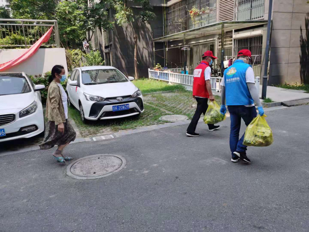 由于疫情的管控,許多路口設(shè)卡,導(dǎo)致居民在手機(jī)APP上采購(gòu)的蔬菜及生活必須品進(jìn)不來。志愿者們第一時(shí)間從內(nèi)聯(lián)系在外輪休的志愿者去卡口,在全方面消毒的情況下幫居民領(lǐng)取生活必需品?!耙咔橄?,你們也要一定要保護(hù)好自己啊?!本用癜l(fā)自肺腑的關(guān)心也讓志愿隊(duì)成員們心頭涌上一陣暖意。