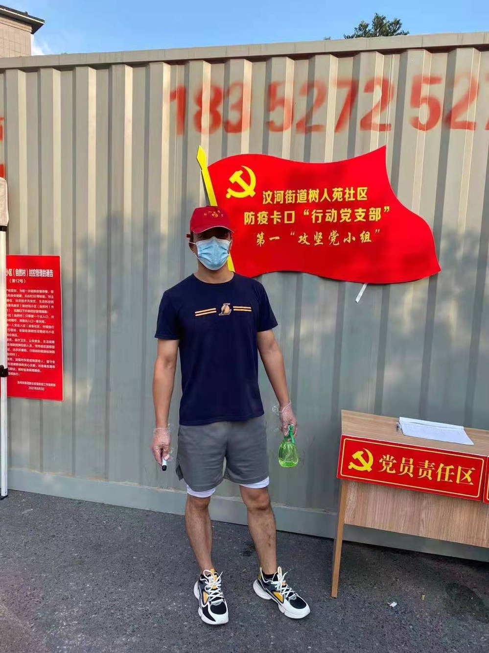潔源排水陳晨,在樹人苑社區(qū)負(fù)責(zé)進(jìn)出人員排查和物資配送工作。