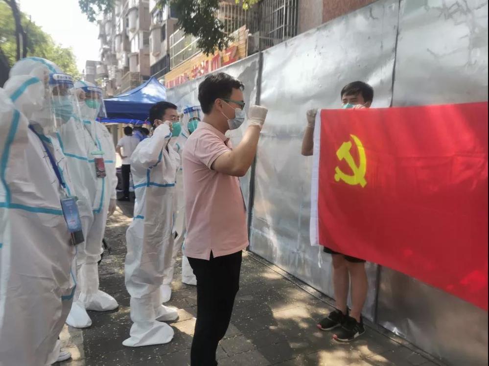 “城控集團(tuán)抗疫志愿服務(wù)行動臨時(shí)黨支部”的旗幟從武塘社區(qū)再一次插上了廣儲社區(qū)的地界上。