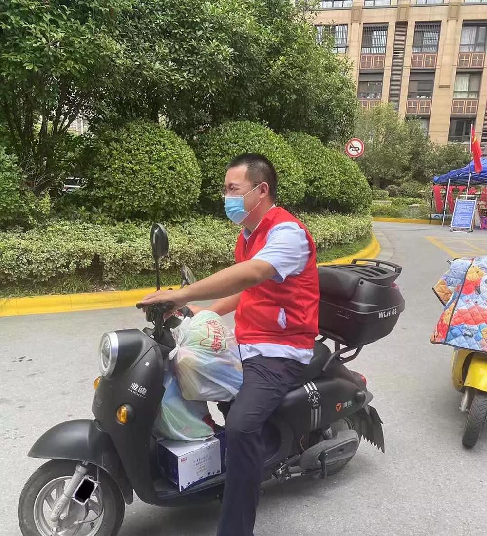 (計(jì)劃財(cái)務(wù)處吳亞洲,在璽園社區(qū)進(jìn)行蔬菜、肉品生活物資配送,每日往返100余次)
