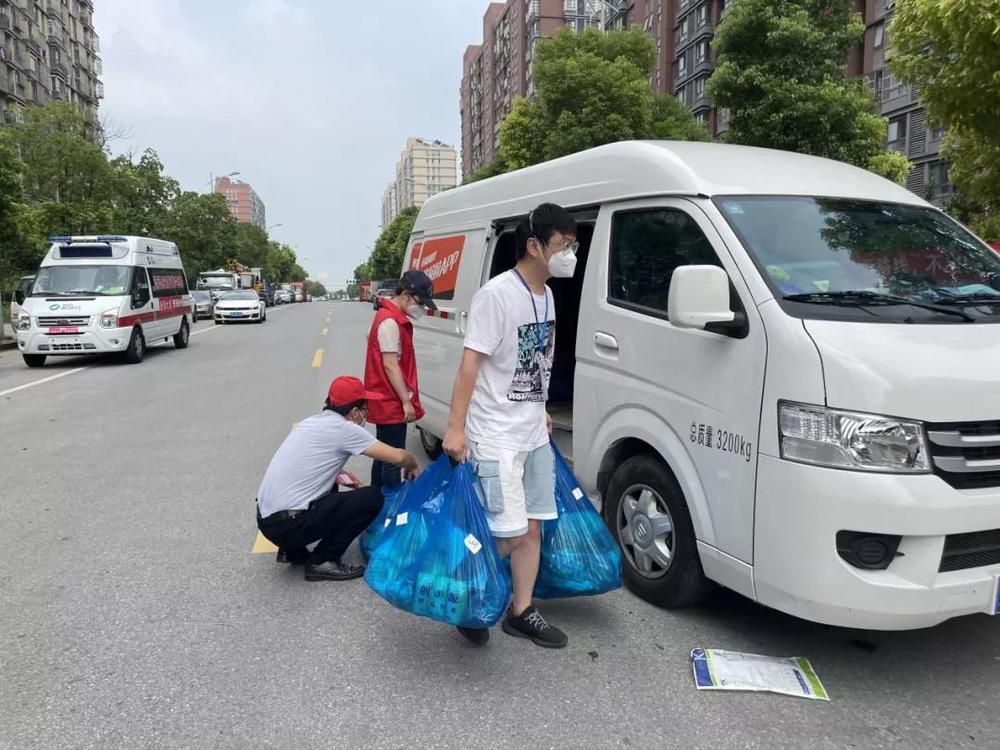 (安全保衛(wèi)處 易飛,在萬福社區(qū)為配送物資進(jìn)行裝車,做好樓棟統(tǒng)計(jì)后的分發(fā))