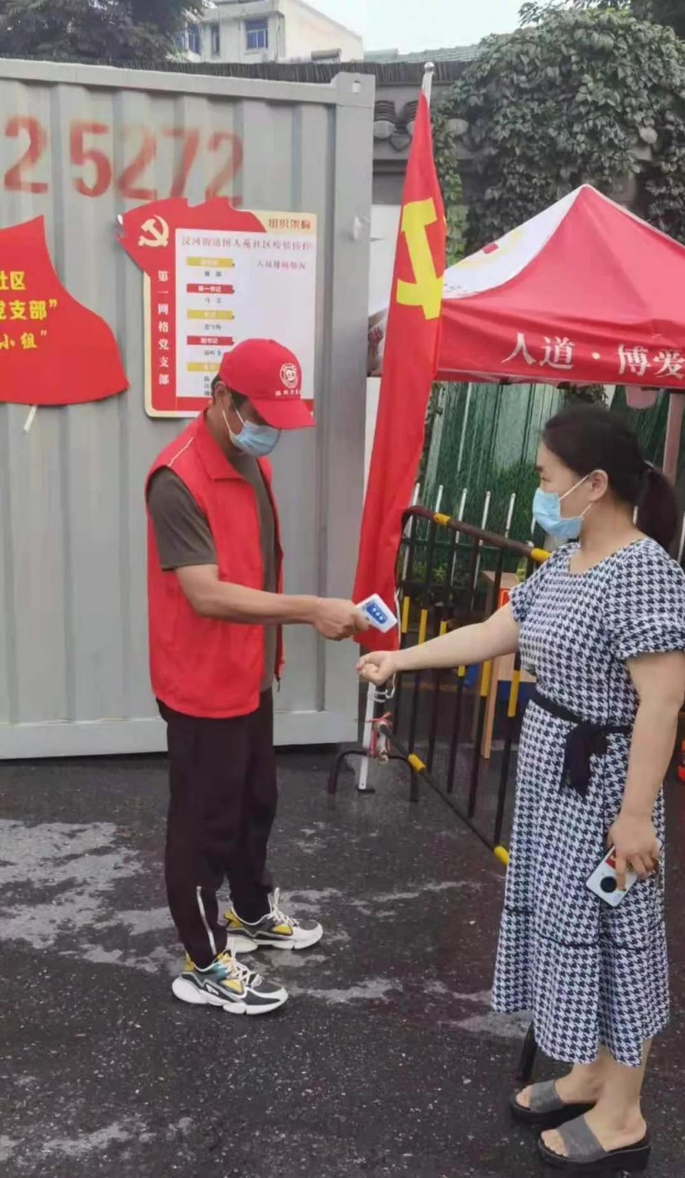 (生產(chǎn)運(yùn)行處陳晨,在樹人苑社區(qū)認(rèn)真對核酸檢測人員進(jìn)行體溫測量,同時(shí)進(jìn)行居家隔離勸導(dǎo))