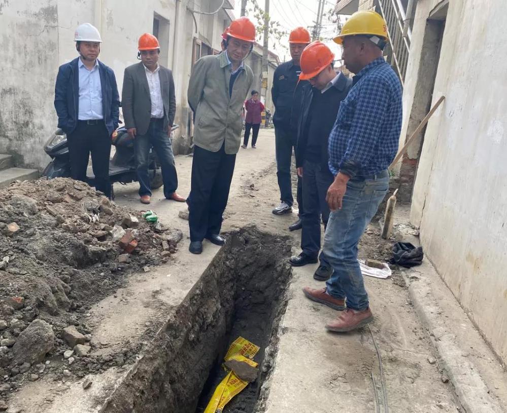 在施工現(xiàn)場(chǎng),戚磊詳細(xì)了解了老舊管網(wǎng)改造工程建設(shè)情況,檢查了現(xiàn)場(chǎng)安全管控措施、人員安全防護(hù)和安全警示標(biāo)識(shí)等重點(diǎn)工作落實(shí)情況。