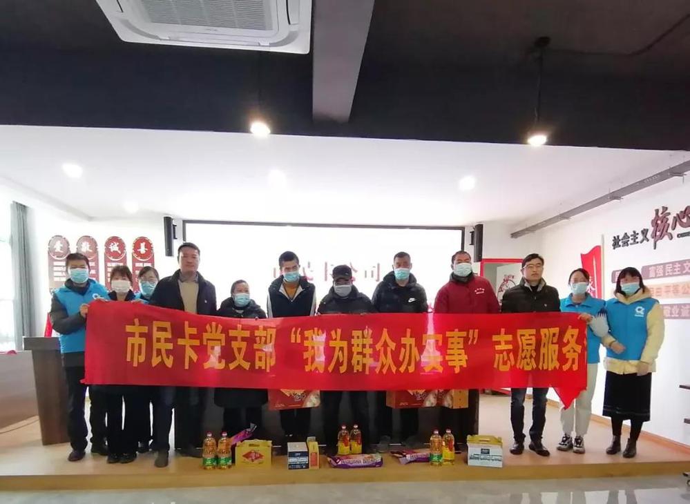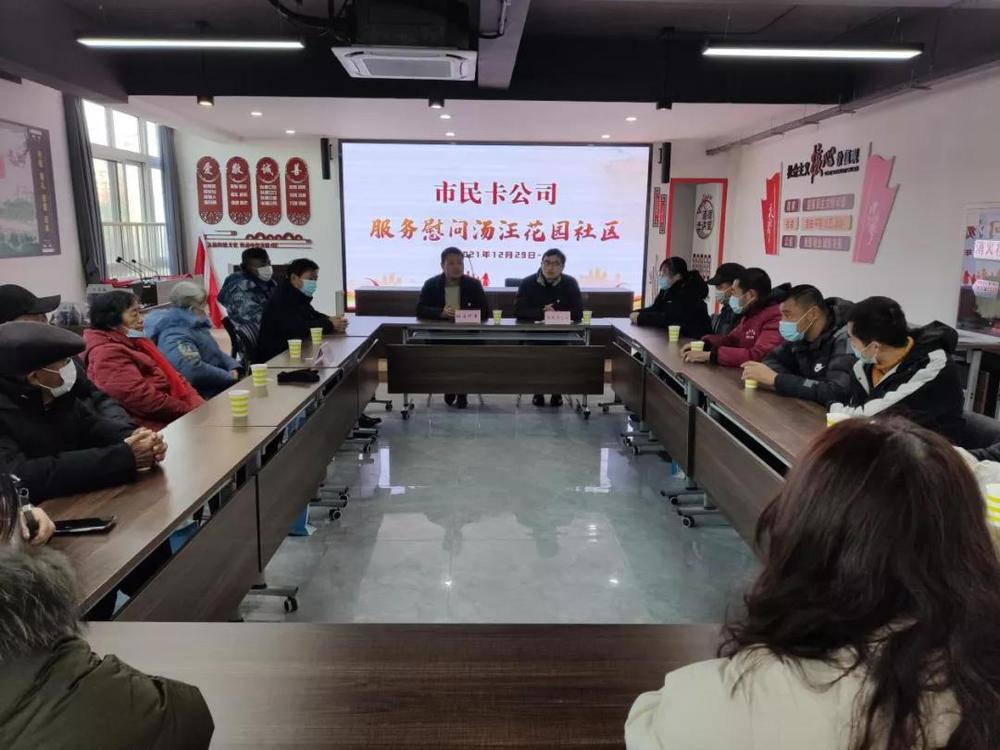 為擴(kuò)大黨史學(xué)習(xí)教育對(duì)黨員干部的影響力和覆蓋率,進(jìn)一步踐行初心使命,市民卡公司充分發(fā)揮黨員先鋒模范作用,結(jié)合公司“我為群眾辦實(shí)事”實(shí)踐活動(dòng)安排,12月29日上午,市民卡公司黨員志愿者服務(wù)隊(duì)來到湯汪花園社區(qū)開展服務(wù)工作座談會(huì),面對(duì)面近距離聽取民聲民意,并慰問了社區(qū)里的困難居民。