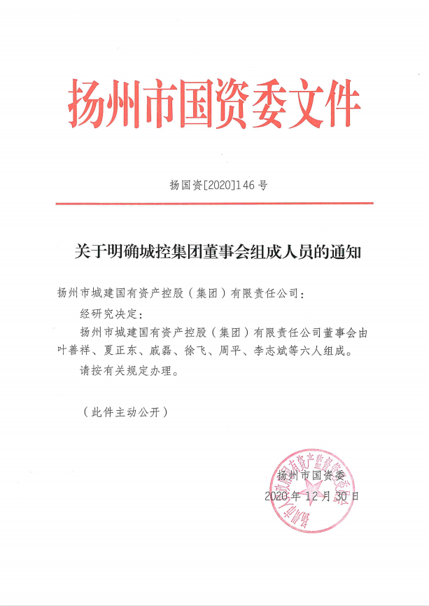關(guān)于明確城控集團董事會組成人員的通知