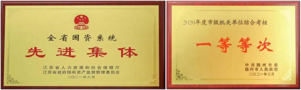 榮獲全省國資系統(tǒng)先進集體、揚州市先進基層黨組織、2020年度全市履行安全生產(chǎn)工作責任先進單位一等獎;連續(xù)四年被表彰為市級機關(guān)績效考核一等等次單位;《打造最懂你的城市綜合服務(wù)App》入選省網(wǎng)信辦2020年度文明辦網(wǎng)創(chuàng)建優(yōu)秀案例;被授予第二屆“揚州慈善獎”最具愛心慈善捐贈單位和“揚州市慈善總會成立20周年突出貢獻獎”。