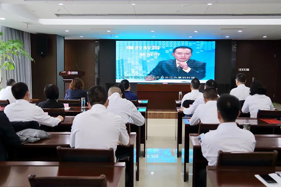 會上,各部門負責人遞交了2022年度黨風廉政責任書,與會人員還集中觀看了廉潔從業(yè)警示教育片。