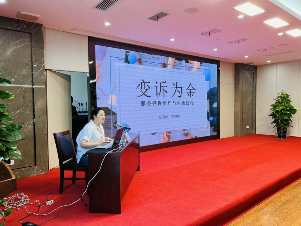 培訓(xùn)特邀南京航空航天大學(xué)金城學(xué)院、南京城市職業(yè)學(xué)院禮儀導(dǎo)師李嬌嬌老師,作《變?cè)V為金——服務(wù)投訴處理與溝通技巧》崗位業(yè)務(wù)專題講座。