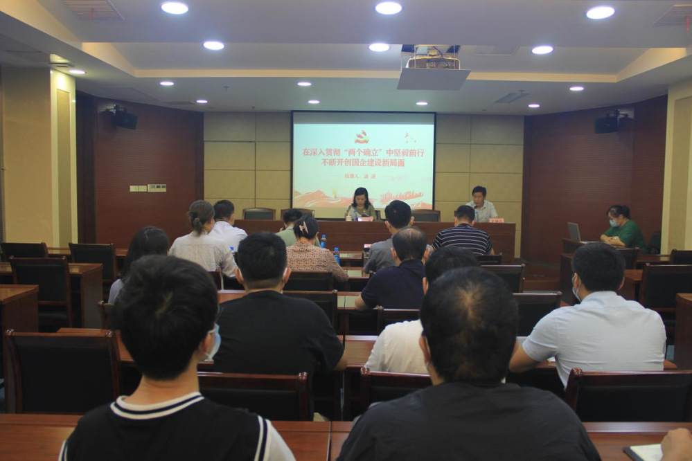 潘涵以《在深入貫徹“兩個確立”中堅毅前行,不斷開創(chuàng)國企建設新局面》為題,以“國有企業(yè)要理解、貫徹好‘兩個確立’,關鍵是要解決好‘怎么看’和‘如何做’”為切入點作了詳細闡述,并對市民卡公司轉型發(fā)展提出了要求。