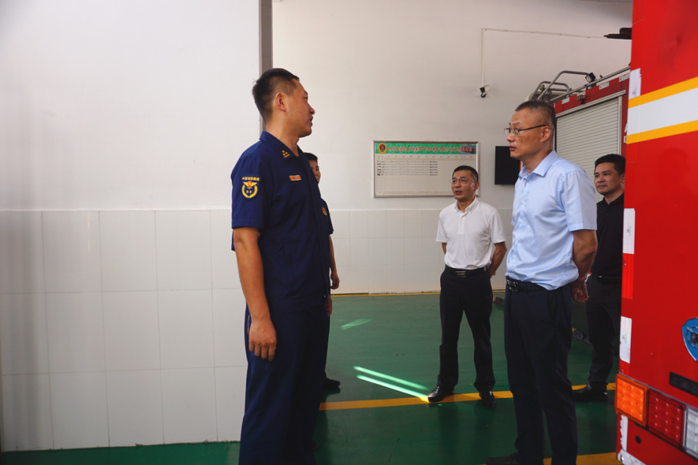 公司一行親切地慰問了消防隊(duì)員,參觀了消防隊(duì)員的訓(xùn)練場地,了解隊(duì)員們的日常訓(xùn)練及消防設(shè)施設(shè)備等運(yùn)行情況,認(rèn)真學(xué)習(xí)了在事故預(yù)防、隱患排查、搶險救援等方面的優(yōu)良經(jīng)驗(yàn)。消防隊(duì)員感謝大家對消防救援工作的關(guān)心和支持。保護(hù)人民群眾生命財產(chǎn)安全是消防救援隊(duì)伍的神圣職責(zé),他們一定不負(fù)人民重托,戰(zhàn)高溫、斗酷暑,始終奮戰(zhàn)在搶險救援第一線,為群眾安居樂業(yè)保駕護(hù)航。