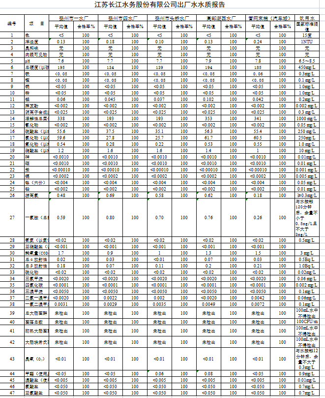 江蘇長(zhǎng)江水務(wù)股份有限公司出廠(chǎng)水水質(zhì)報(bào)告 ( 2021 年 12月 )