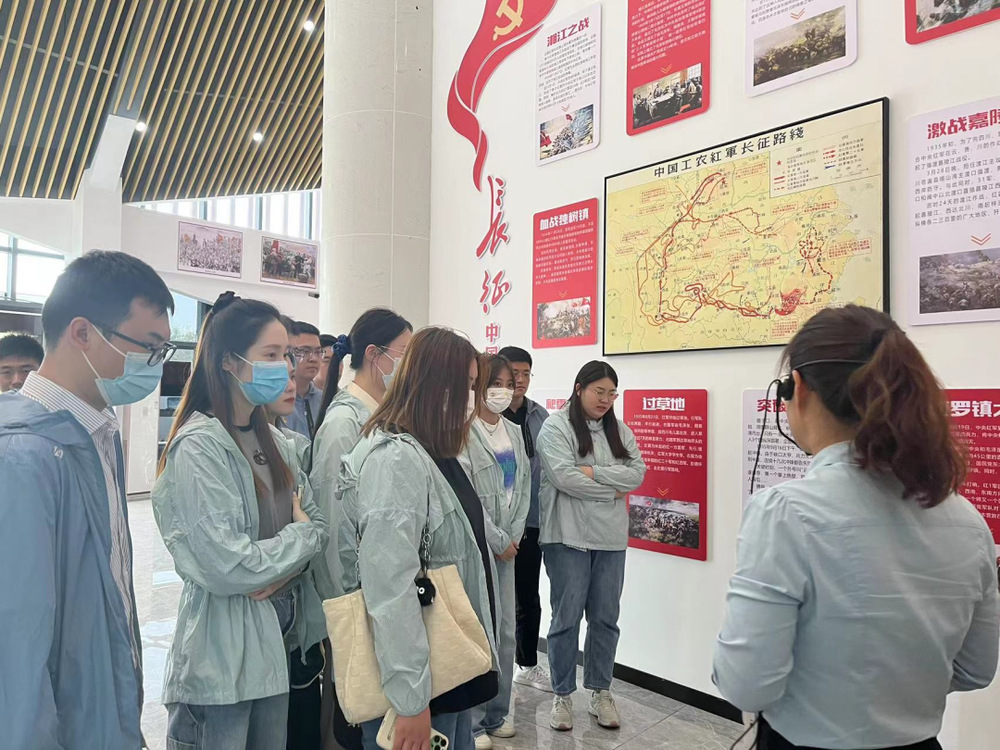 一進入黨史文化公園,大家都被這里的“紅色文化”氛圍吸引了,在公園內(nèi)的兩座先烈銅塑,展現(xiàn)了革命烈士為新中國成立拋頭顱、灑熱血的戰(zhàn)斗畫面。全體青年職工懷著崇敬的心情,參觀了黨史文化公園初心館,追尋紅色足跡,瞻仰革命先烈的事跡圖片和歷史實物,通過講解員的講解和游覽紅色VR數(shù)字展館,回顧黨史、長征史、共青團史,瞻仰了革命先烈為共產(chǎn)主義事業(yè)奮斗終身的堅定決心,并在此紅色革命圣地重溫了入團誓詞,傳承偉大革命精神。
