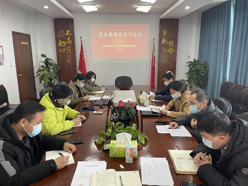 12月14日上午,古城保護(hù)公司召開黨支部(擴(kuò)大)理論學(xué)習(xí)會。公司黨支部書記、董事長梁玉榮主持會議并講話。公司全體員工參加會議。