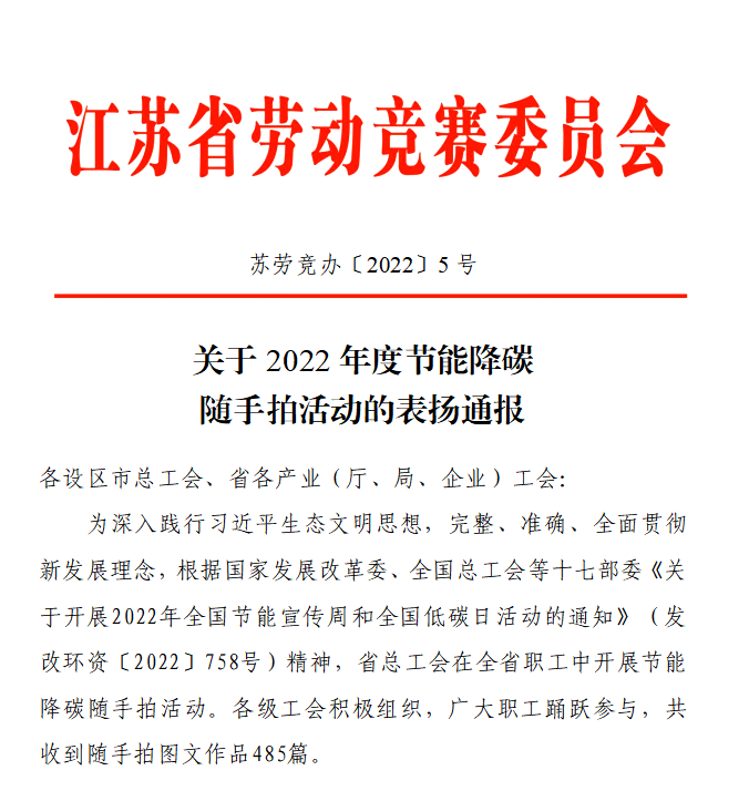 近日,江蘇省勞動競賽委員會發(fā)布《關(guān)于2022年度節(jié)能降碳隨手拍活動的表揚通報》,揚州市建盛公用事業(yè)發(fā)展有限公司金淳同志的作品——《正確應(yīng)用氣候補償器 一個采暖季節(jié)約蒸汽5萬噸》榮獲二等獎。