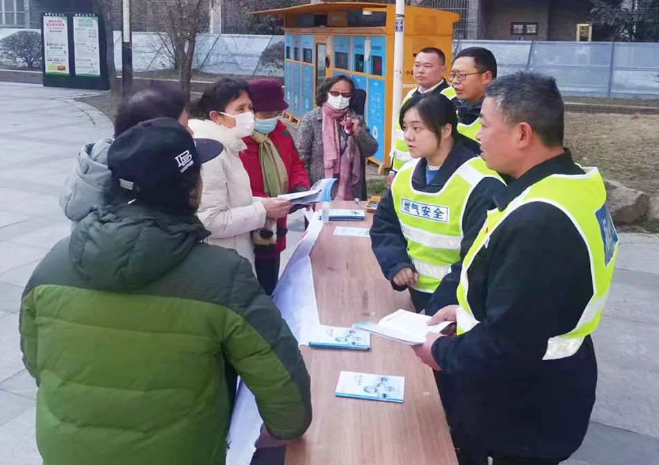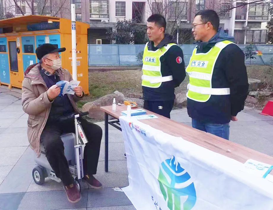 在社區(qū)廣場(chǎng),志愿者們?yōu)樯鐓^(qū)居民發(fā)放燃?xì)獍踩褂檬謨?cè),講解燃?xì)獍踩褂弥R(shí)及注意事項(xiàng),走進(jìn)孤寡老人家中開展燃?xì)獍踩珯z查,免費(fèi)更換不銹鋼波紋管。