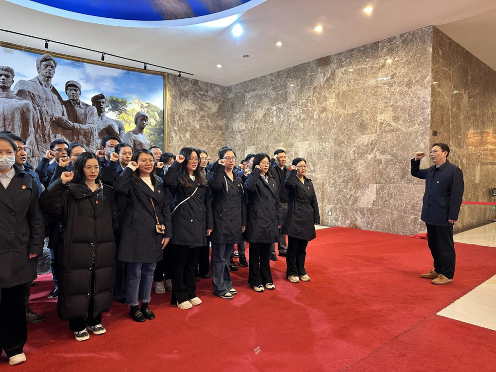 緬懷英烈祭忠魂,撫今追昔思奮進(jìn)。在革命烈士紀(jì)念碑前,全體人員整齊列隊(duì)、肅穆佇立,向革命烈士三鞠躬致以崇高的敬意和深切的哀悼,并向革命先烈敬獻(xiàn)鮮花。隨后,在講解員的引導(dǎo)下,全體人員參觀揚(yáng)州革命烈士紀(jì)念館,學(xué)習(xí)烈士事跡,重溫黨的歷史。館內(nèi)記載了江上青、許曉軒等全國知名烈士和揚(yáng)州各個(gè)革命時(shí)期200多名烈士的生平事跡和斗爭史料,革命先烈們浴血奮戰(zhàn)、英勇不屈的革命精神深深打動(dòng)著在場所有人。全體黨員舉起右拳重溫入黨誓詞,重憶入黨初心,錚錚誓言在館內(nèi)久久回蕩。