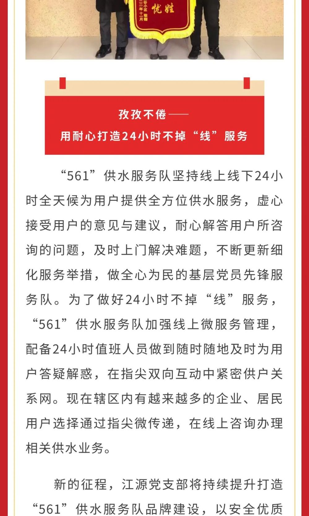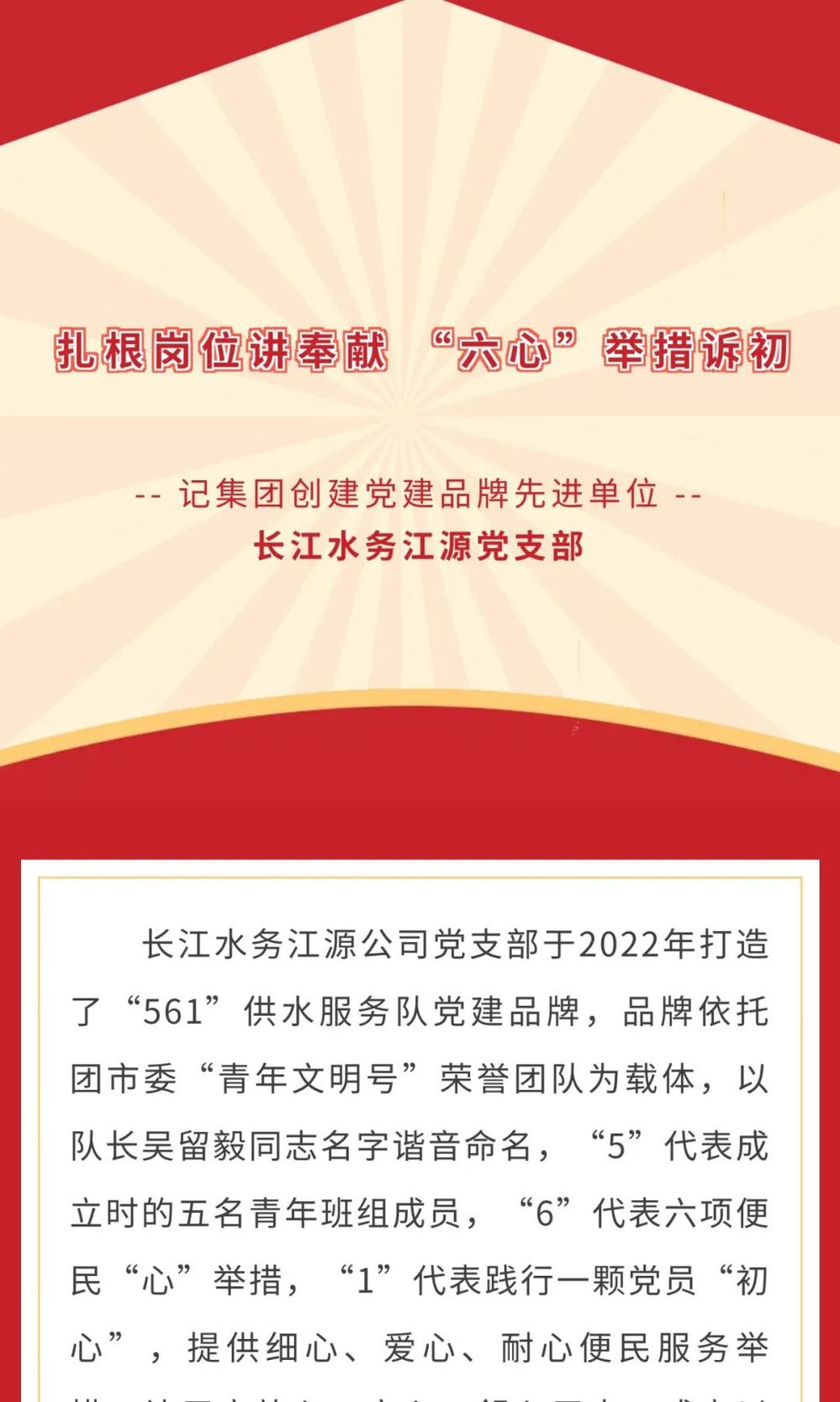 【慶“七一” 學(xué)先進(jìn)】扎根崗位講奉獻(xiàn) “六心”舉措訴初心——記集團(tuán)創(chuàng)建黨建品牌先進(jìn)單位 長(zhǎng)江水務(wù)江源黨支部
