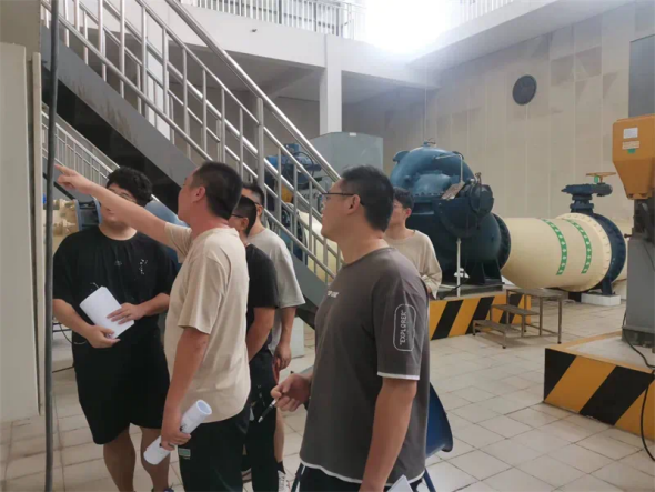 此次省水務(wù)行業(yè)泵站運(yùn)行工決賽由理論考試、技能操作兩個(gè)環(huán)節(jié)組成,每部分均以百分制計(jì)分,理論考試占總分的30%,技能操作占總分的70%。其中技能操作采取單人賽與團(tuán)體協(xié)作賽相結(jié)合方式進(jìn)行。單人賽考核項(xiàng)目為高壓變頻器及機(jī)泵組巡檢,團(tuán)體協(xié)作賽考核項(xiàng)目為水泵機(jī)組平車。