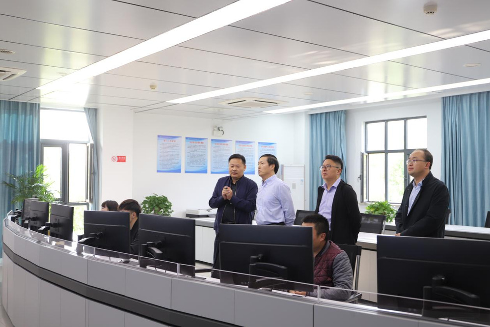 沈家寬一行首先參觀了潔源環(huán)境公司綜合環(huán)保展廳,聽取了市區(qū)污水處理廠建設(shè)和運(yùn)行情況的匯報(bào),并現(xiàn)場參觀了湯汪污水處理廠中央控制室,調(diào)研組一行對(duì)湯汪污水處理廠的穩(wěn)定優(yōu)質(zhì)運(yùn)行表示了肯定。