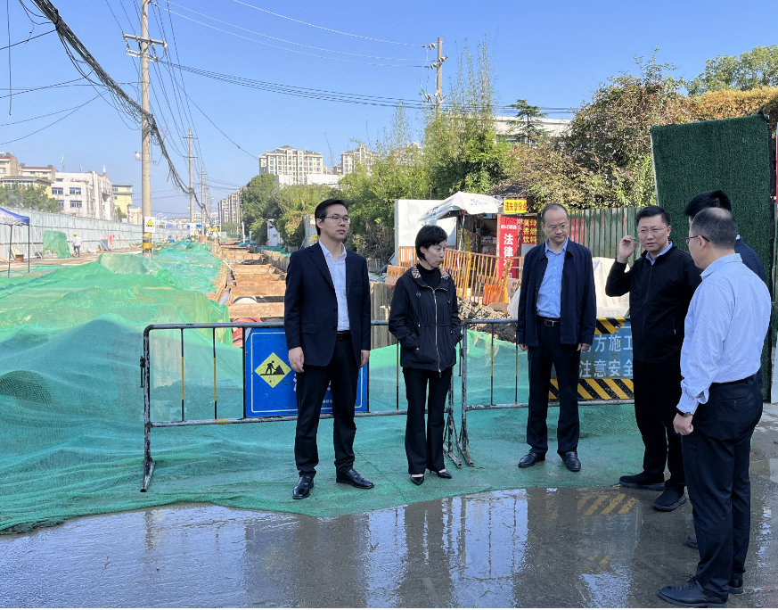 10月20日上午,廣陵區(qū)區(qū)長(zhǎng)郎俊帶隊(duì)來(lái)到上善公司江都路(萬(wàn)福路—文昌路)雨污水管道及景觀提升工程三標(biāo)段施工現(xiàn)場(chǎng),主要督查在建工地?fù)P塵管控情況。區(qū)政府辦、生態(tài)環(huán)境局、住建局、城管局、交通局、商務(wù)局主要負(fù)責(zé)人及上善公司總經(jīng)理付元寧陪同參加督察。