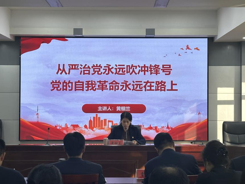會(huì)議集中學(xué)習(xí)了《中國(guó)共產(chǎn)黨紀(jì)律處分條例》部分內(nèi)容,參會(huì)人員集中觀看了警示教育片《永遠(yuǎn)在路上》(第六集)。公司黨支部書記、總經(jīng)理黃棚蘭以《從嚴(yán)治黨永遠(yuǎn)吹沖鋒號(hào) 黨的自我革命永遠(yuǎn)在路上》為題講授黨課,并進(jìn)行了集體廉政談話,教育引導(dǎo)全體干部職工進(jìn)一步筑牢“知敬畏、存戒懼、守底線”的思想根基。