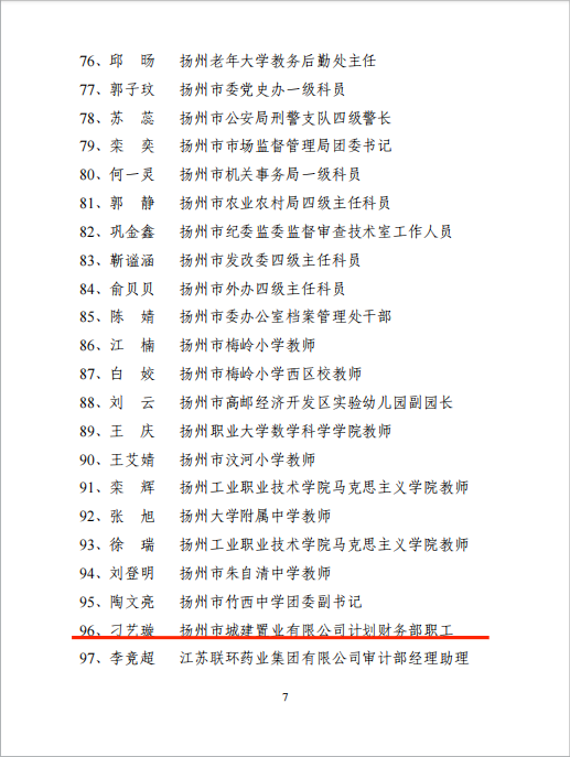 近日,市委宣傳部、市委組織部、市級機關(guān)工委下發(fā)了《“學(xué)思想、強黨性、重實踐、建新功”主題宣講暨2023年度“我是黨課主講人”活動情況通報》,城控集團選送的2名選手——揚州市城建置業(yè)有限公司刁藝璇、江蘇長江水務(wù)股份有限公司張薇被評為2023年度揚州市“優(yōu)秀黨課主講人”。