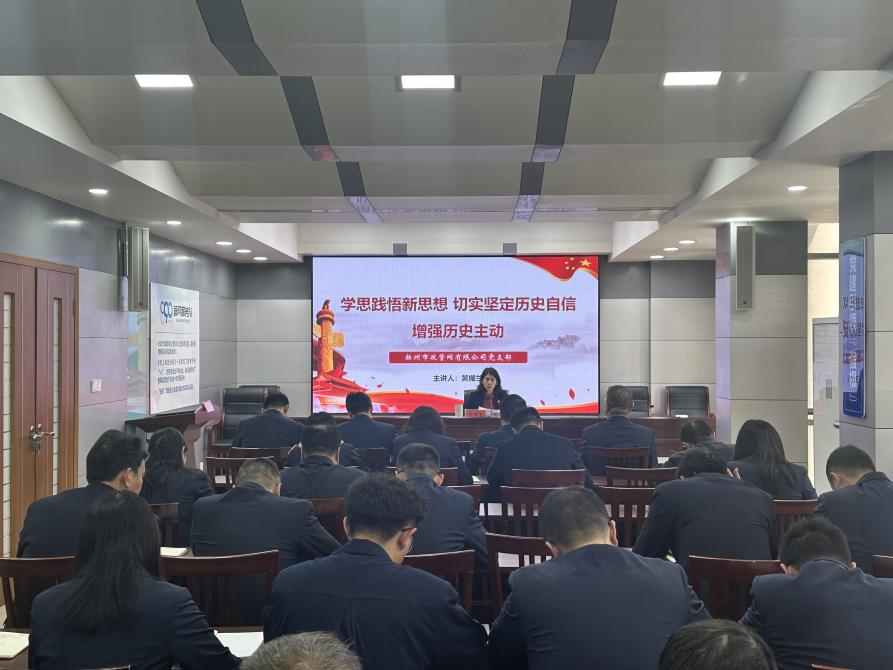 會議集中學(xué)習(xí)了城控集團(tuán)2024年黨建工作暨全面從嚴(yán)治黨會議精神,部署了公司2024年黨風(fēng)廉政建設(shè)工作。會上,黨支部書記、總經(jīng)理黃棚蘭同志以《學(xué)思踐悟新思想 切實(shí)堅(jiān)定歷史自信 增強(qiáng)歷史主動(dòng)》為題講授黨課,教育引導(dǎo)全體黨員干部把握歷史機(jī)遇,加快干事創(chuàng)業(yè)的步伐,以深刻的歷史自覺引領(lǐng)我市排水事業(yè)發(fā)展朝著更加現(xiàn)代化、智慧化的方向不斷邁進(jìn)。