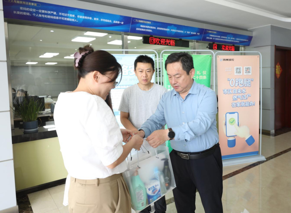 “高溫天氣,工作辛苦,大家要好好照顧自己,做好個(gè)人防護(hù)。” 炎炎夏日送清涼,滴滴關(guān)愛(ài)暖人心。每到一處,城控集團(tuán)董事長(zhǎng)張思忠都詳細(xì)詢問(wèn)職工們高溫天氣下的工作和生活狀況,叮囑大家,勞逸結(jié)合,做好防護(hù),確保安全生產(chǎn)和身體健康。