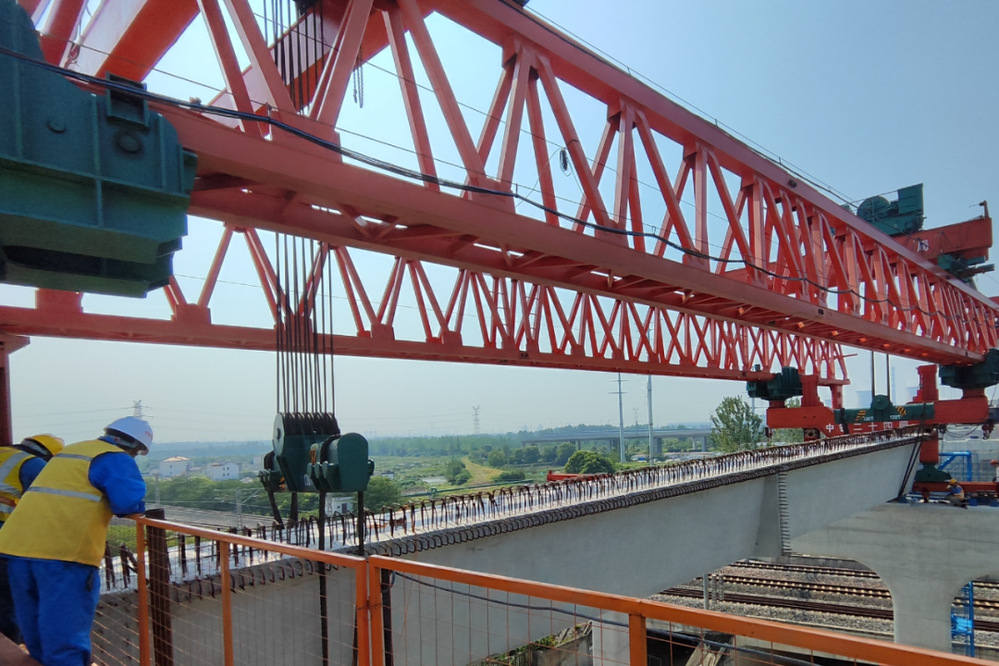 8月10日上午,運河路北延鐵路鄰跨順利完成架橋機過軌、首片箱梁架設(shè)施工任務,打響了跨鐵路箱梁架設(shè)施工第一槍。