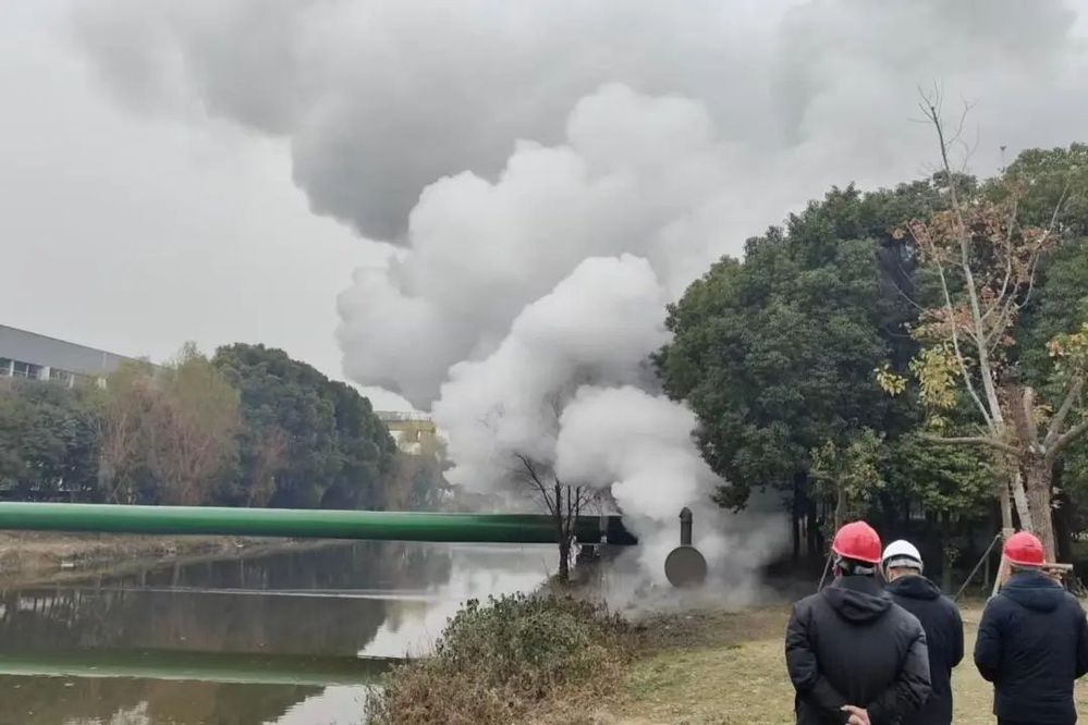 12月25日,隨著凝汽成霧的“白煙”沖天涌起,揚(yáng)州市區(qū)東部及南部主干線(三期)三、四、五標(biāo)段供熱管道完成吹掃作業(yè)。