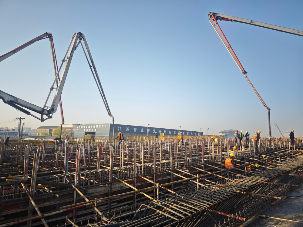 1月1日,萬??焖俾窎|延建設(shè)工程項目利用元旦假期進行全線最寬現(xiàn)澆箱梁混凝土澆筑施工。此次澆筑區(qū)域為Pm18-Pm21聯(lián)底腹板,橋?qū)?7.16到44.26米,采用泵送C50混凝土,共計3300方,本次澆筑1800方,澆筑用時約20小時。