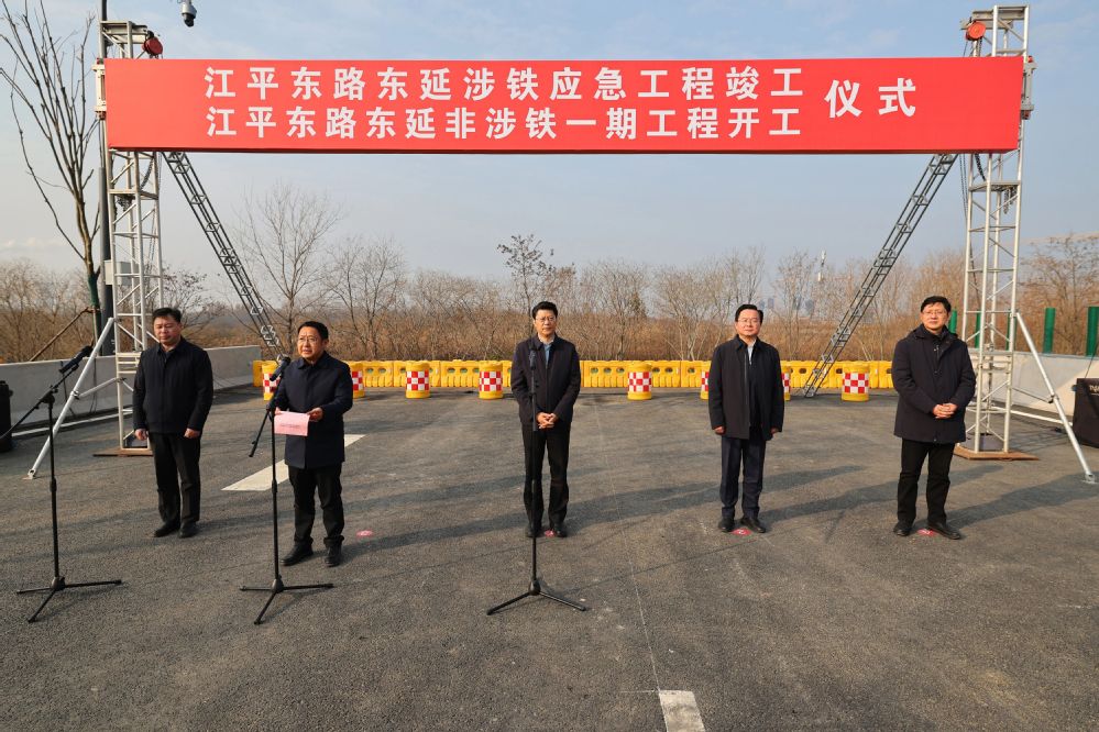 江平東路東延涉鐵應(yīng)急工程竣工、江平東路東延非涉鐵一期工程開工儀式現(xiàn)場